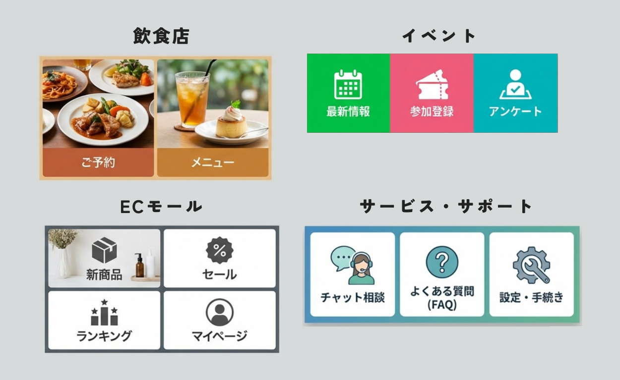 業種別のLINE公式リッチメニュー事例