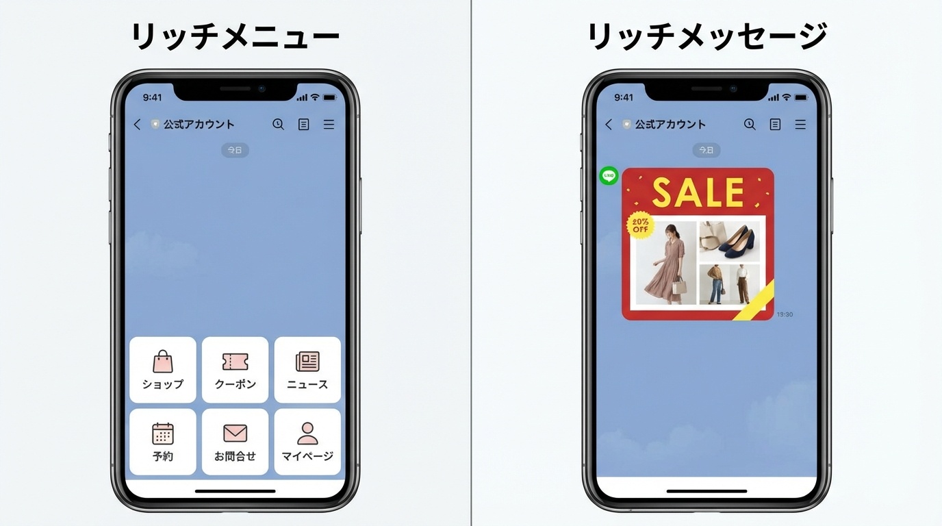 混同されがちな「リッチメニュー」と「リッチメッセージ」ですが、機能や役割が異なります。